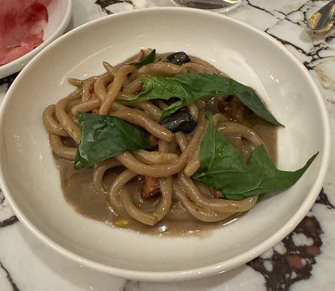 Then there was a “King Oyster Gilda.” I only ordered this because both Jonny and our server recommended it, and I’m so glad they did. At a time when Gilda seem to be on every menu, this was several tiers better than any I’d had before. The mushroom was lightly fried. The pepper was pleasantly spicy.