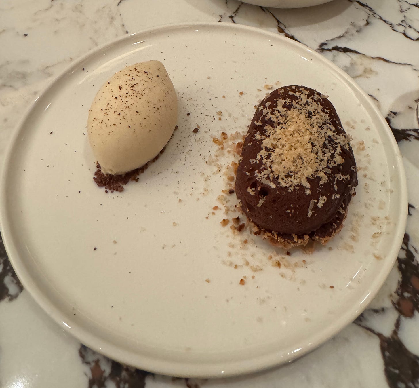 Desserts started with “Warm Hazelnut & Manjari Cake.” This was basically a fondant stuffed with runny hazelnut instead of chocolate, and it was stunning. We spent ten minutes talking about how beautiful it is to eat Hazelnuts when they are done so well.