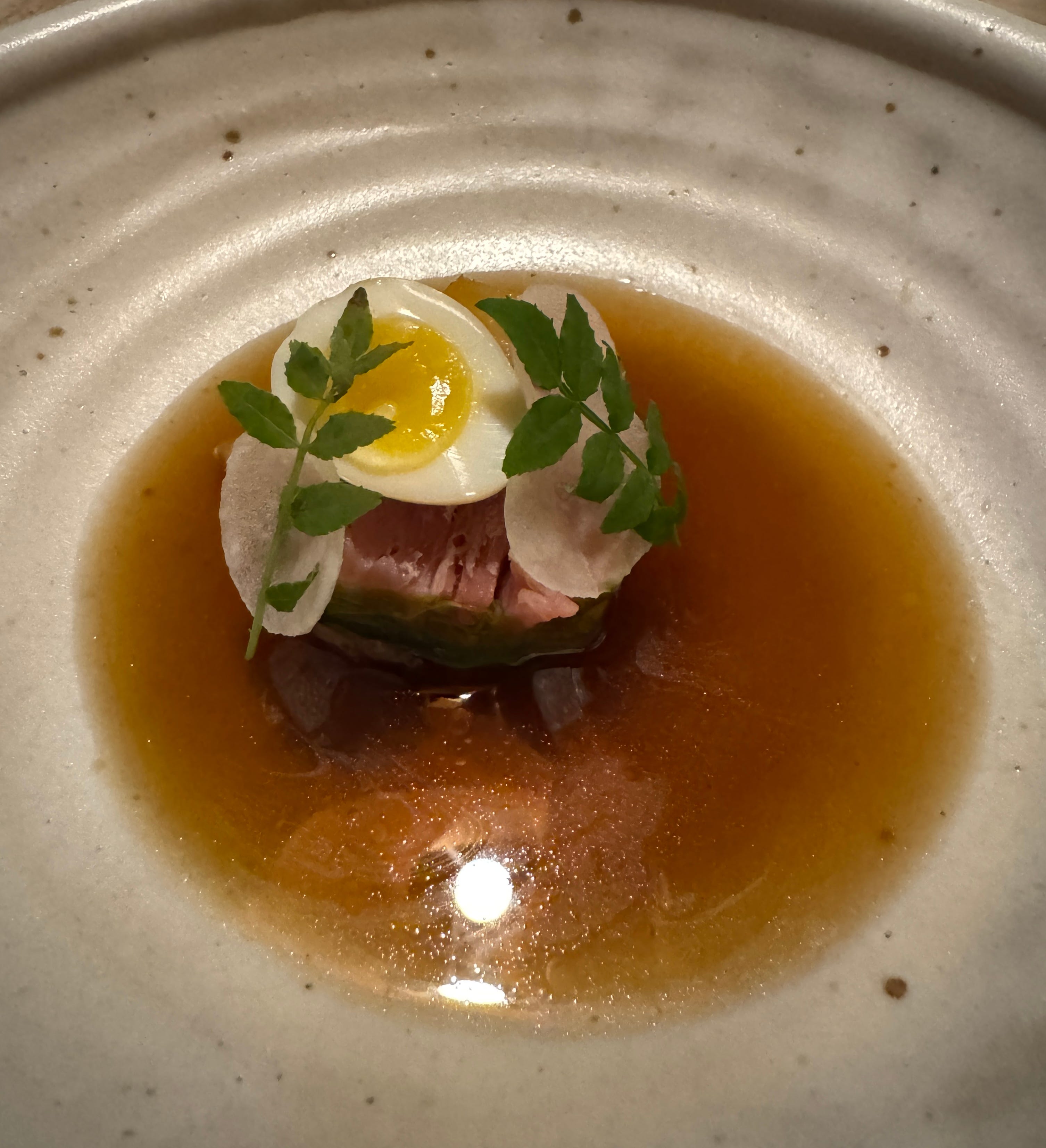 Then there was an off-menu surprise. A dashi made table-side with lots of bonito flakes then poured over Chawanmushi. It was classic Japan, but bolder.