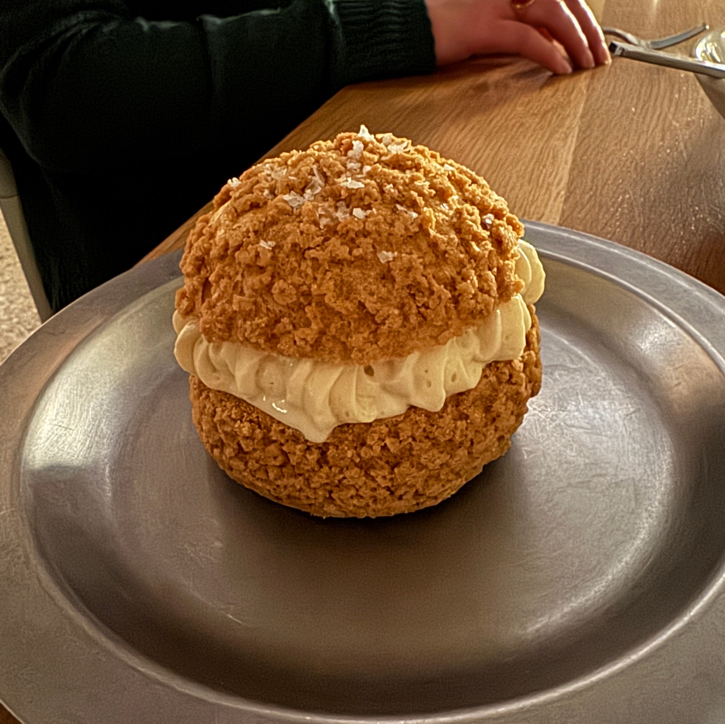 The ice cream was really rich. The cheese flavour comes through and acts as a balance for the meringue’s intense sugariness. Together, it was a sweet cheese course. Weird but wonderful. The choux bun was similarly great.
