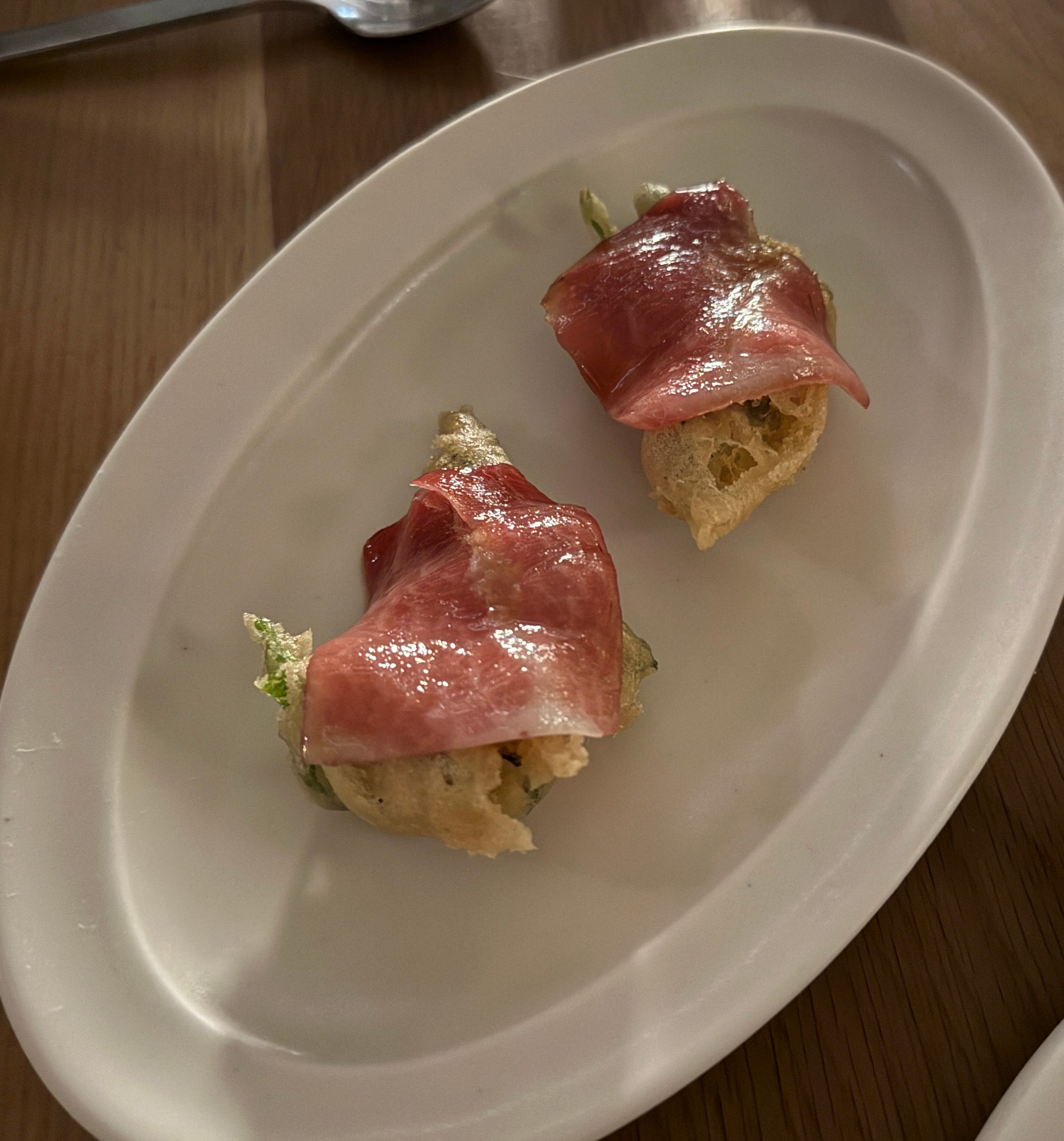 For our first round — snacks — we chose oysters with horseradish. I wasn’t sure about this, but it was excellent. The horseradish sauce was sensitively done, a great balance for the oysters’ natural sweetness without overwhelming them.